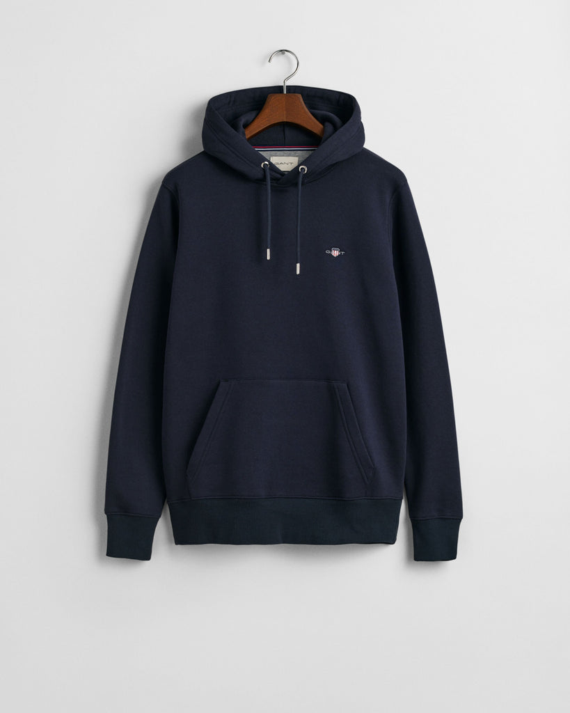 Featuring a small-scale shield graphic embroidered at the chest, this Gant hoodie is cut in a regular fit for a more tailored style. The design is complete with a kangaroo pocket and silver drawstring eyelets.
